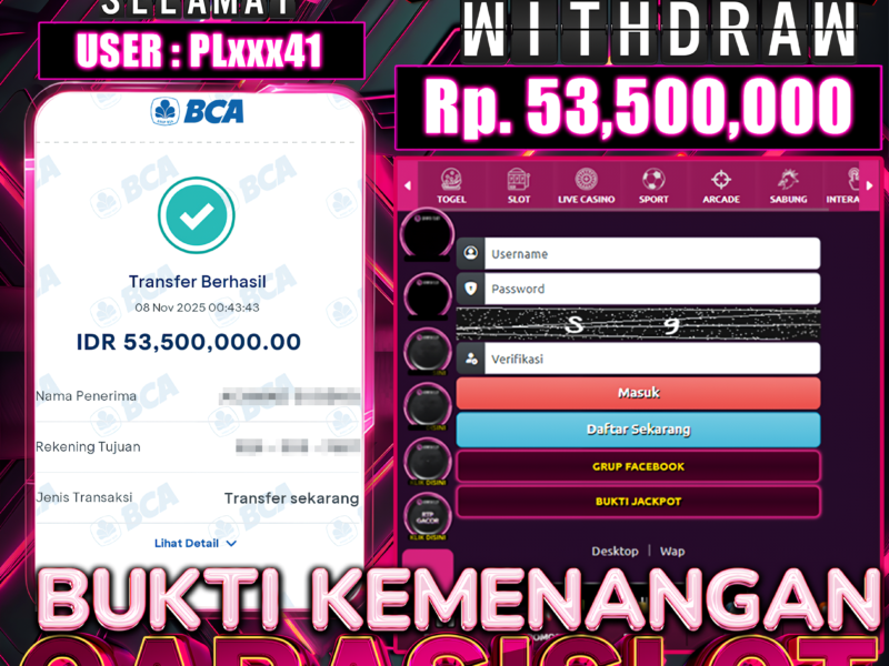 Selamat Kepada Id :ID: ALIS****ETA Atas Withdraw Rp. 5.102.500 Juta Hari ini. Ditunggu Withdraw Selanjutnya dan ajak juga teman temannya bergabung diĀ GARASISLOT